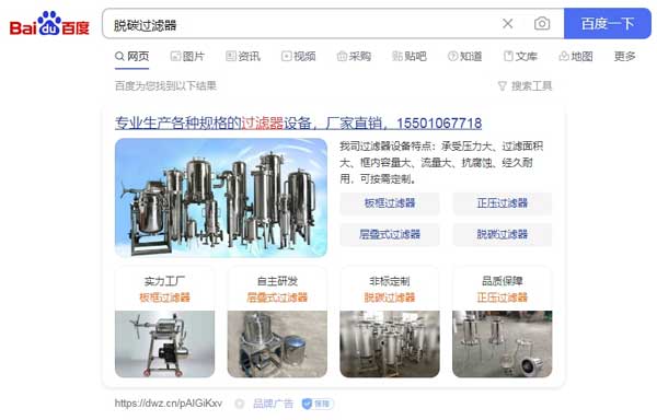 關鍵詞搜索結果頁百度左側/手機端置頂品牌廣告位展現。